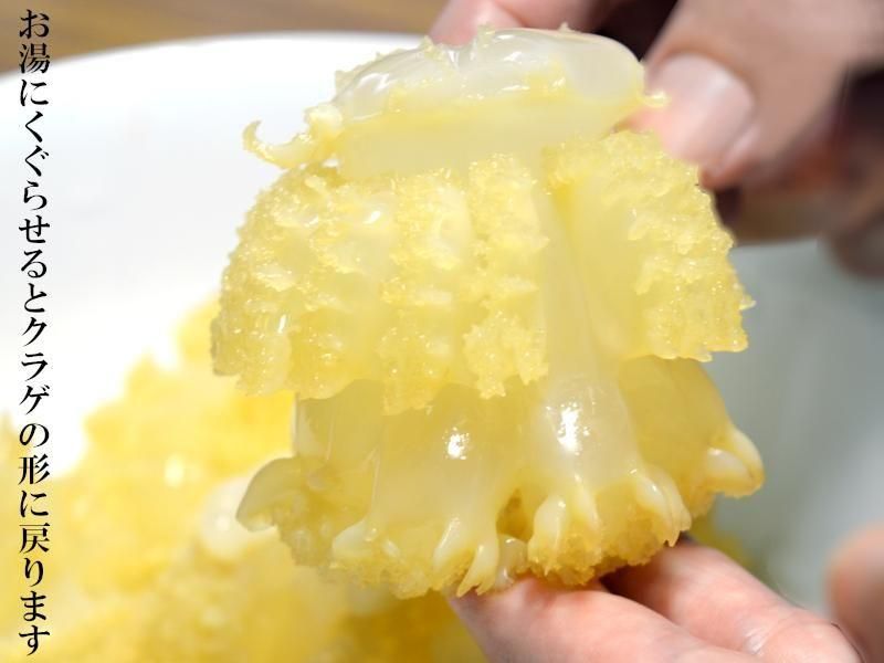 ※弊社のクラゲは漂白剤・保存料を使用していないため、開封時ににおいを感じる場合がございますが品質に問題はございません。水にさらせばにおいが和らぎます。