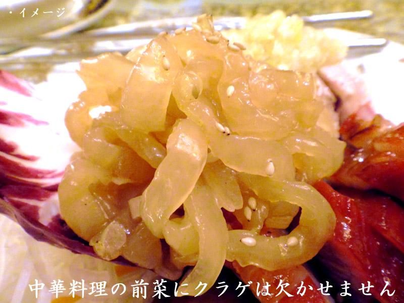 くらげは中華料理の前菜には欠かせない高級珍味です。こりこりした食感が、これから中華を食べるんだと胃袋をすっきり刺激してくれます。本商品はアメリカ産のキャノンボールクラゲ(頭)原料を中国で加工したものです。漂白剤・着色料は不使用です。使いやすい1kgパックにしました。日本では脚と呼ばれるクラゲの触手部分を中国では頭と言います。