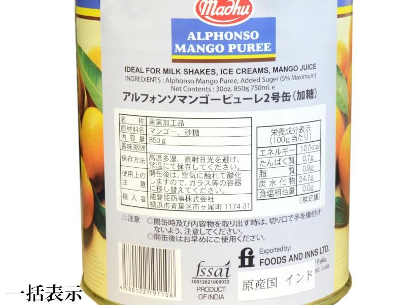 最近は日本でもすっかり定着した果実マンゴーはアイスクリームやミルクセーキ、マンゴージュースのフレバーとして大変人気が有ります。本商品はインド産のアルフォンソマンゴーをピューレ状にした業務用缶詰です。お得な業務用ケース(12缶入り)です。夏場に人気のスイーツの原料に、ご家庭でもヨーグルトやスムージーに、夏はかき氷にも。