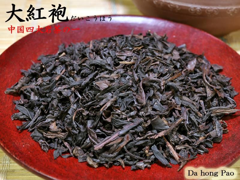 中国福建省に武夷山と呼ばれる銘茶の産地があります。この山で産出されるお茶は特に岩茶と呼ばれ、その中でも特に有名なこの大紅袍は、岩茶の王と呼ばれ、世界中でその名を轟かせています。大紅袍の原木は樹齢約四百年と、悠久の歴史を持っていて、歴代中国皇帝専用の貢茶として、国家の厳重な保護管理下におかれています。現在でも年間に約800グラムのみ生産されていますが、当然一般には流通せず、ある種の人々に献上されている特別なお茶です。現在大紅袍という名がつく岩茶は武夷山で分木によって生産されたお茶です。大紅袍は味や香りに特別な特徴は有りません。水のように捉えどころが無く、そこがかえって中国人の茶心の琴線に触れるとのことです。本商品は現在流行中のミルクティー用にカットした大紅袍です。