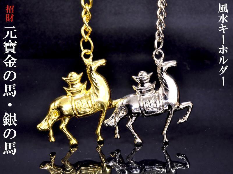 馬のキーホルダー 招財元寶馬(金/銀)風水キーホルダー