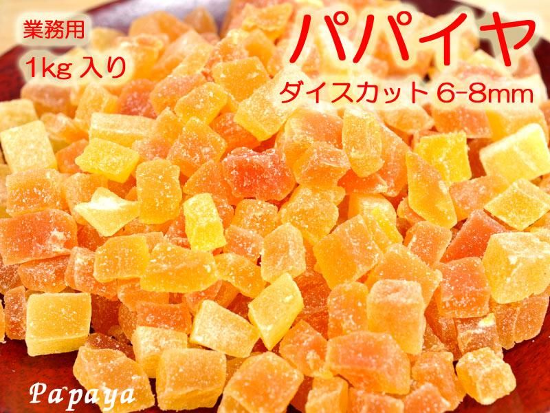 本商品は甘みの強いタイ産ドライパパイヤを6-8mmのダイスカットにした商品です。製菓・製パン・スィーツの原料として、また中国茶のお茶請けなどにたっぷり業務用1kg入りです。もちろんそのまま食べても美味しく頂けます。