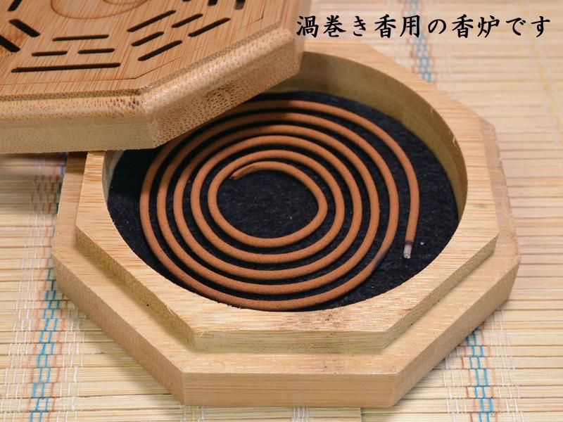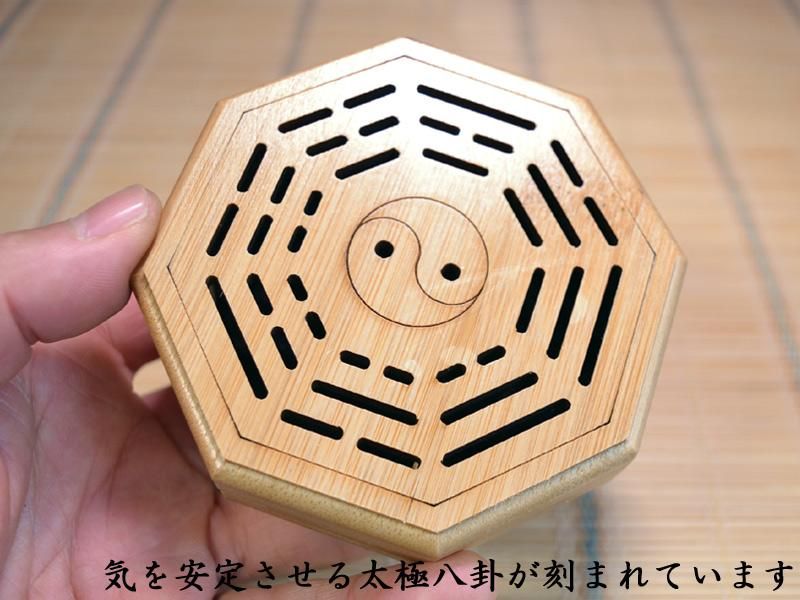 中国では香を炊くことによって大気中の邪気を払い、運気改善に役立つと言われています。本商品は渦巻き香用の竹香炉です。風水でおなじみ、気を安定させる道教のシンボル太極八卦が彫られたお洒落な香炉です。実際に使用するのはもちろん、オフィスや中華料理店などのインテリアにもお勧めです。