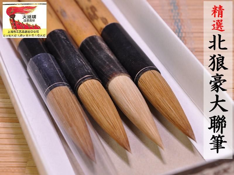 中国筆の名牌【火炬牌】の最高級の鼬原毛を使用した上質の一本「精選北狼豪大聯筆」です。