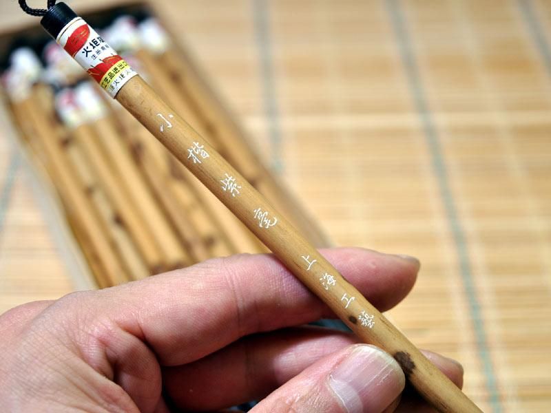 中国筆の名牌【火炬牌】の唐筆「小楷紫豪」です。兎の毛を使用した腰のある一本です。少し硬めの筆なので細字を書くのに適しています。