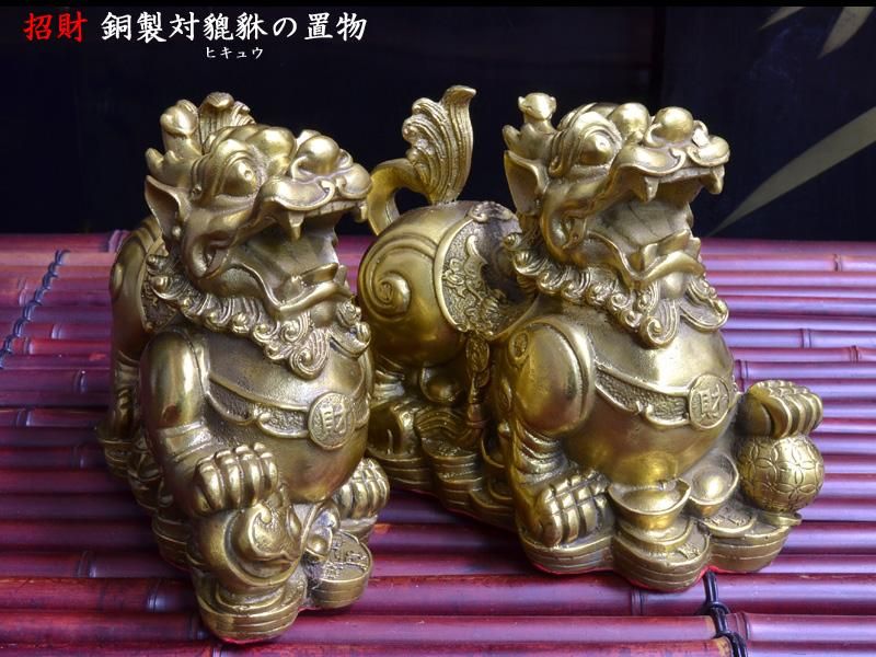 ヒキュウの置物 銅製招財対貔貅 宝くじ