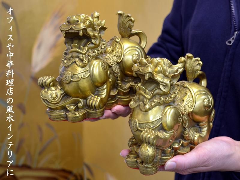 貔貅(ヒキュウ)は、漢の時代以前には翼獣と呼ばれた想像上の動物で、どんな願い事も叶えてくれるという有難い神獣です。財を集める効果に優れ、特に賭け事やギャンブルなどによるお金(偏財)には効果があると言われています。風水を研究していくと最後には貔貅にたどり着くと言われている風水最高のアイテムの一つです。本商品は好運を呼び寄せる球と願いを叶える如意を持つ対貔貅の置物です。オフィスや中華料理店などの風水インテリアにもお勧めです。