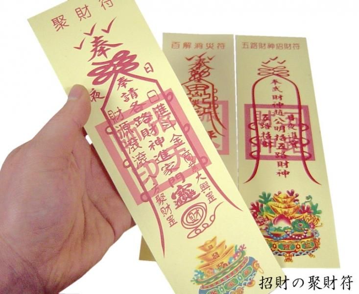 ・種類 聚財符/百解消災符/五路財神招財符/土地公招財符/玉皇賜財符/鎮宅符