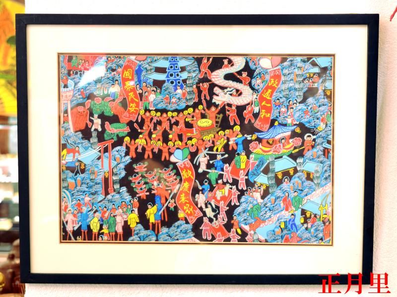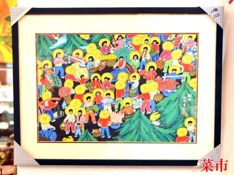 農民画は1960年代前後に中国各地の農民たちの間で発展した民間工芸です。中国各地の農村で農民が内職として描いていた絵の総称で、カラフルでポップな色合いがモダンアートとして1990年代ごろから世界的に評価されつつあります。オフィスや中華料理店などのインテリアにも!