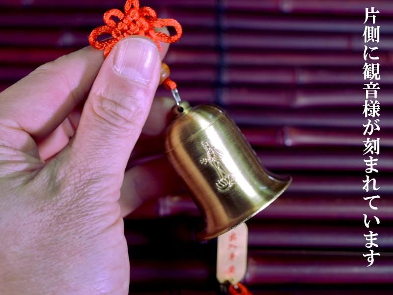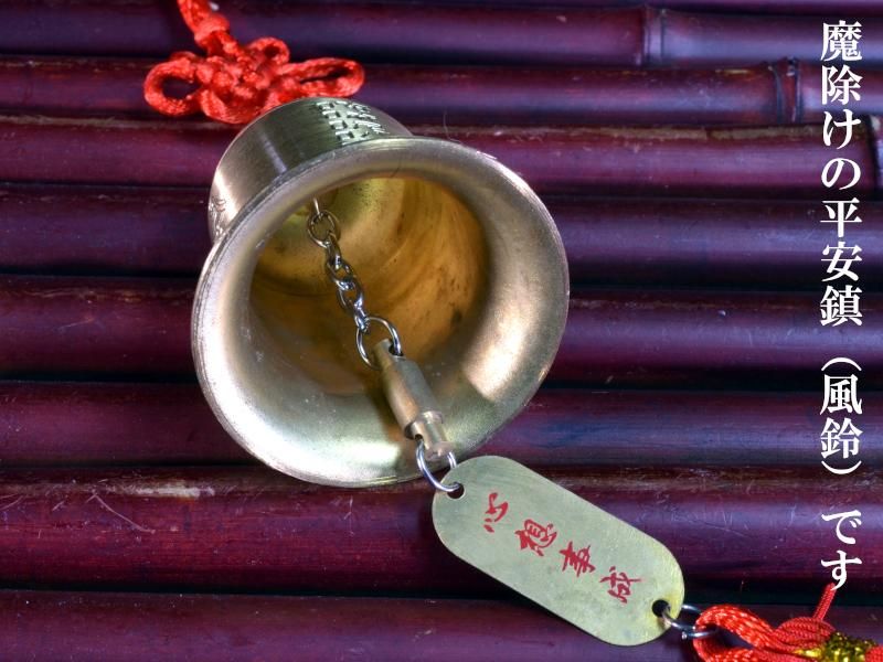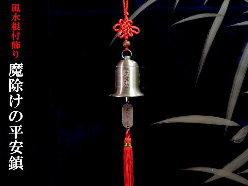 古来より鈴の澄んだ音色は悪い気を退ける効果があると言われ、風水では魔除けのアイテムとして人気が有ります。本商品は観音様が刻まれた平安鎮(風鈴)モチーフにした魔除けの風水飾りです。涼しげな音色が響きます。オフィスや中華料理店などのインテリアにも!