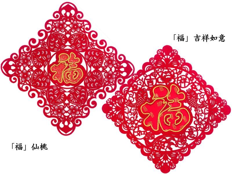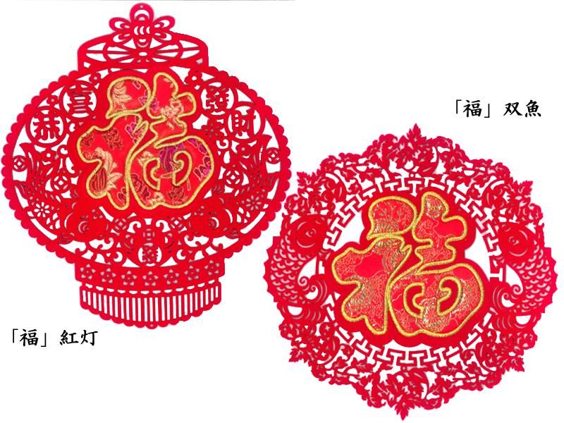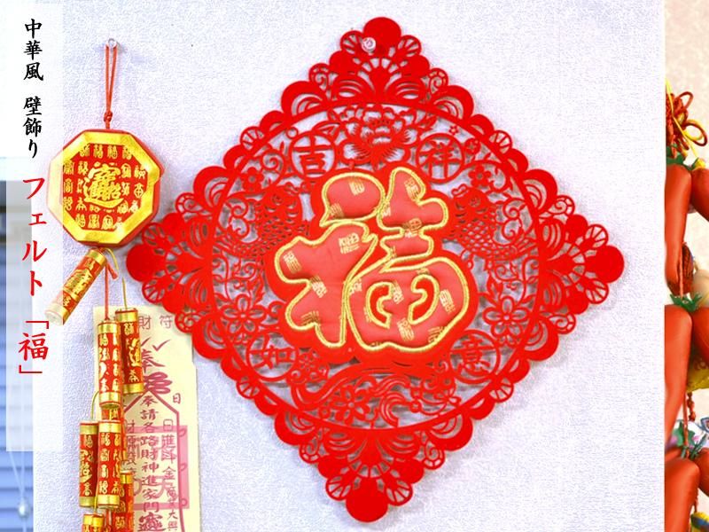 縁起の良い中国の壁飾りです。「福」字はその中でもっともポピュラーなものです。中国では「倒福」と言って福が降りてくるように「福」字を逆さにして飾ることが多いです。本商品は【福】の字をモチーフにフェルト地を切紙風に切り抜いた少しし厚手の中国の壁飾りです。
