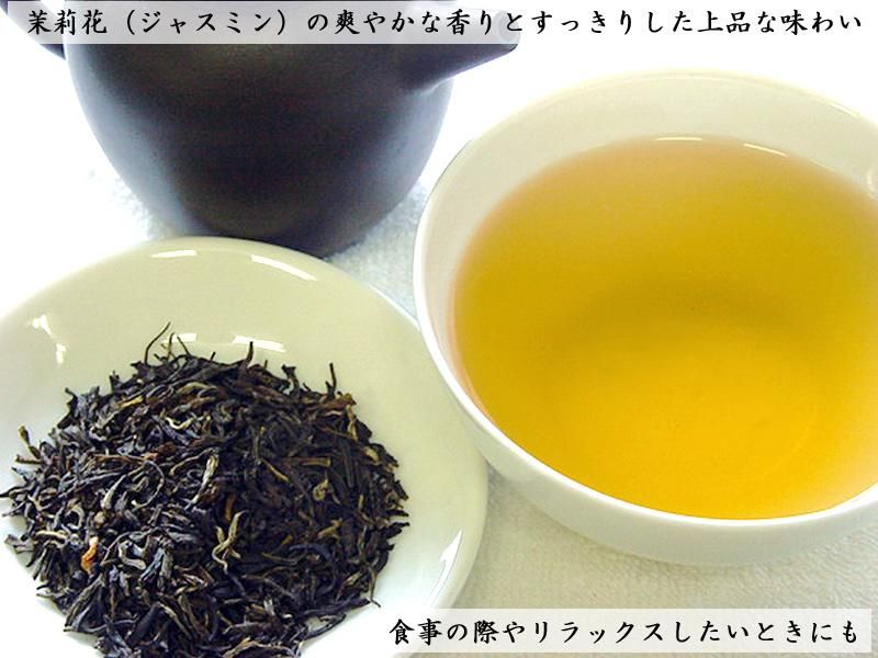 茉莉花(ジャスミン)の花の香りには気分を鎮めてくれる効果が有るということで、特に女性に人気の中国茶です。何かとストレスの多い現代人にリラックスのひと時をもたらしてくれます。弊社の茉莉花茶は本場中国福建省産の茉莉花茶を100%使用しております。従来多めに入れていた花を少なくして、雑味を抑え、すっきりとした上品な味わいに仕上がりました。高級中華料理屋などでも使用されている本場の茉莉花茶を是非ご家庭でお楽しみ下さい。
