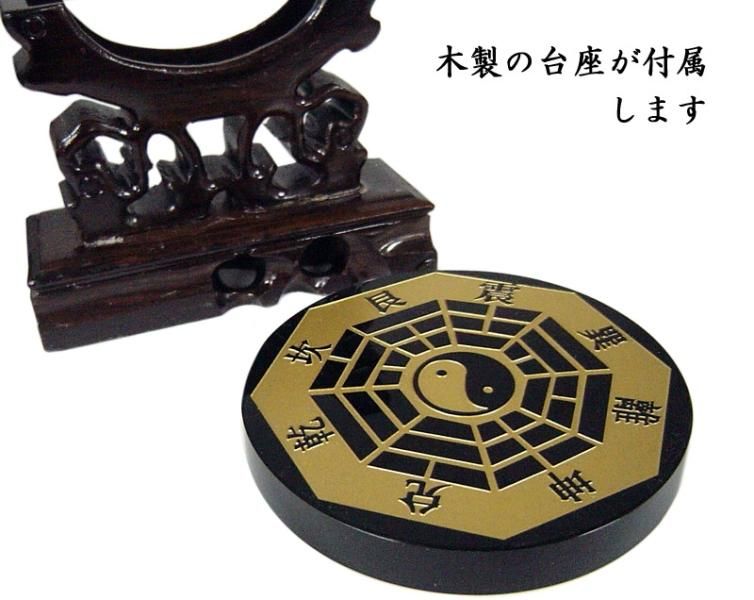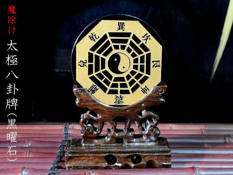 中国では古来より黒曜石には強い避邪の力があると信じられて来ました。中国古代の佛教文物には数多くの鎮宅や避邪を目的とした怪物や佛像が見られます。また太極八卦は全ての根源、始まりのマーク「太極」と、易経で言うところの宇宙における物事の状態を現す記号「八卦」を組み合わせたデザインで、風水では悪い気を跳ね返し運気の改善を図るとして様々なモチーフとして使用されています。本商品は黒曜石と太極八卦の力を組み合わせた避邪鎮宅の置物です。悪い気を跳ね返し運気の改善が図れると言われています。専用の木製台座付きです。オフィスなどに飾ると良い運を呼びこむと言われています。また中華料理店などのインテリアにもおすすめです!