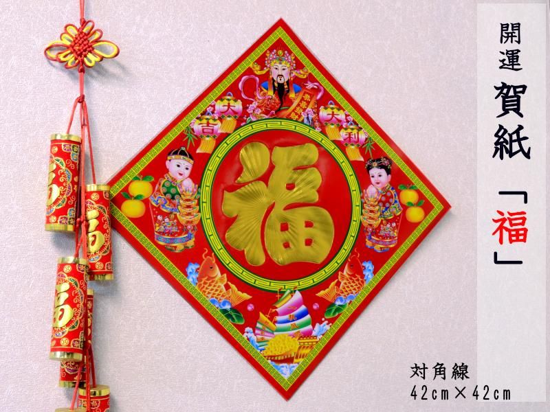 中国飾り 開運賀紙【福】(対角線42×42cm)1枚