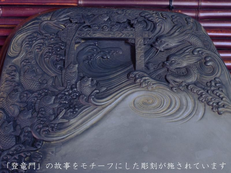 登竜門の故事が彫刻された大きな工芸歙州硯です