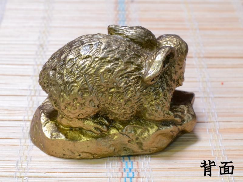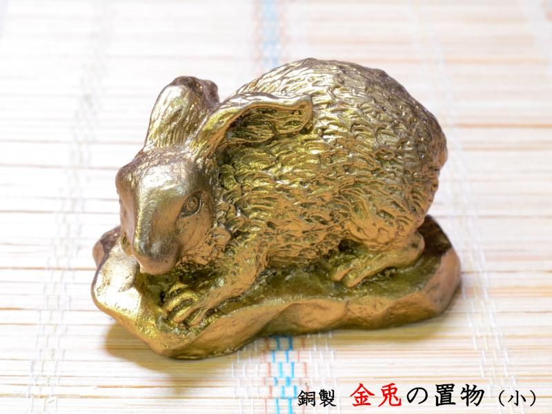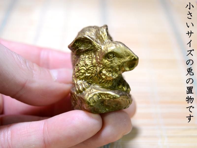 中国では兎は古代聖なる神獣とされていました。敦煌の莫高窟壁画にもその姿を見ることができます。日本でも付に棲む兎の伝説が伝わっています。頭の良い動物で知恵の象徴とされ、またパートナーを大事にすることから家族平安、家内安全の象徴にされています。本商品は可愛い銅製の金の兎の置物です。小さいミニサイズで置き場所を選びません。
