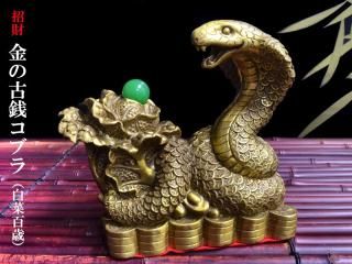 蛇の置物 銅製招財金のコブラ(白菜百歳) 風水置物 2025年干支置物