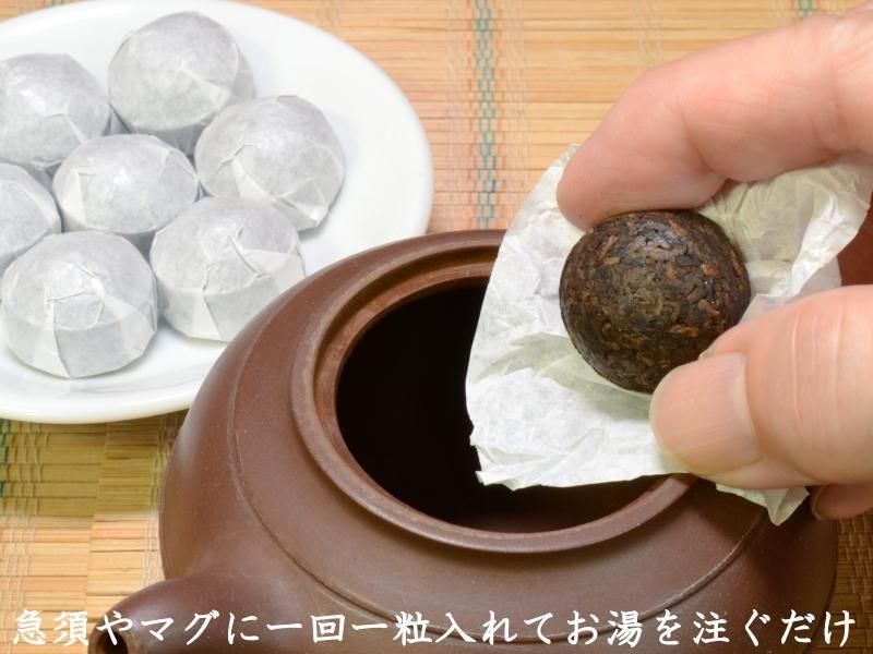 一粒ずつ固められたプーアル茶です