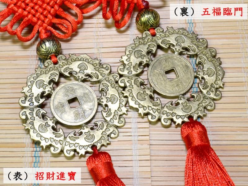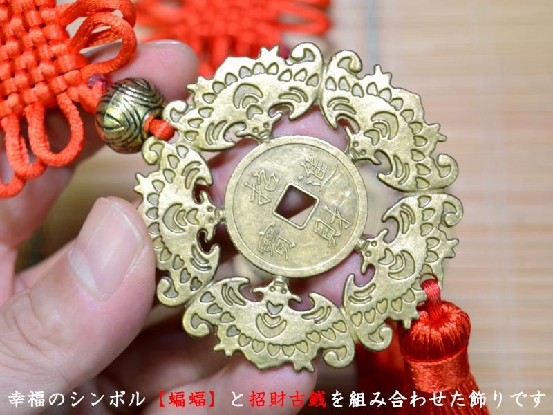 風水飾り 招財蝙蝠古銭牌飾り