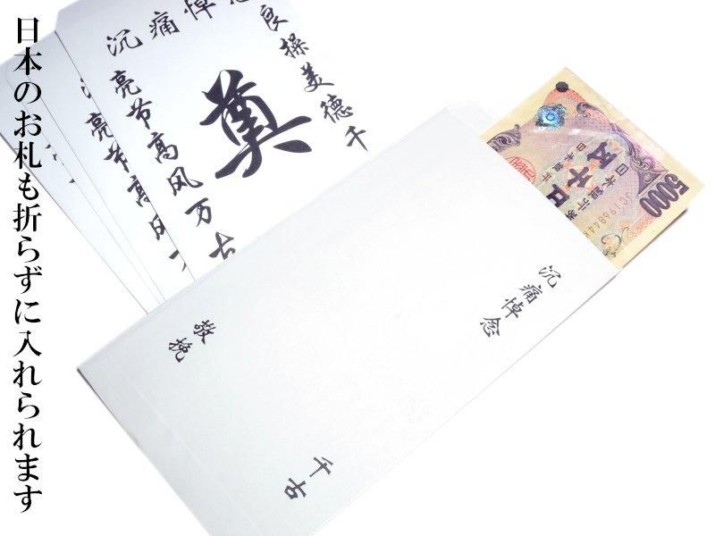 中国ではお香典は特に決まったものがあるというわけではないのですが、一般には白い封筒が使われることが多いようです。本商品は中国でお香典用にと販売されている香典袋です。日本のお札もおらずに入れられます。