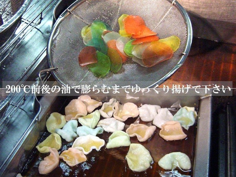 フライパンなどに薄く油を引き、200℃前後まで熱して少量ずつ揚げます(※油ハネに注意ご注意下さい)。熱が通るとふわっと膨らみますので、油から上げて油を切ってお召し上がり下さい。