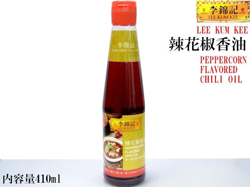 (辣花椒香油)410ml ・原材料 大豆油、乾燥唐辛子、ごま油、乾燥ニンニク、唐辛子(塩漬け)、醤油、塩、砂糖/香料、パプリカ色素、調味料(核酸)、(一部に小麦・大豆・ごまを含む)