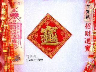 中国飾り 開運布賀紙【招財進寶】(対角線18×18cm)1枚