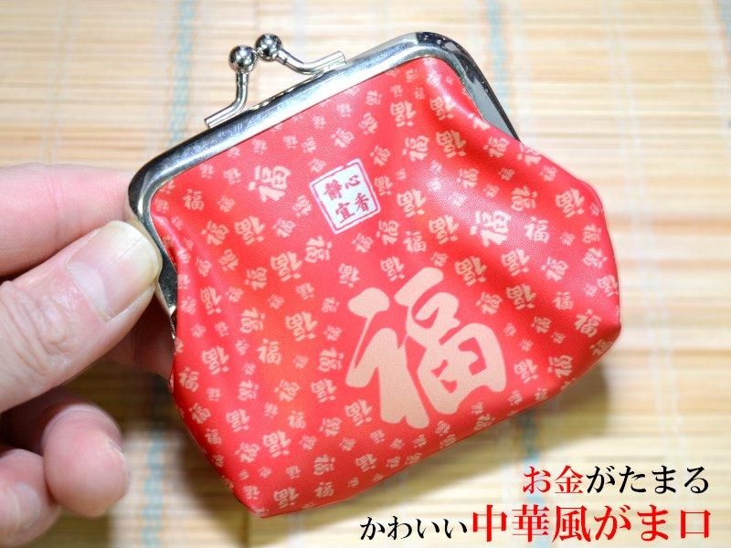 お金がたまる!かわいい中華風 百福がま口 小銭入れ