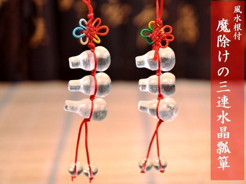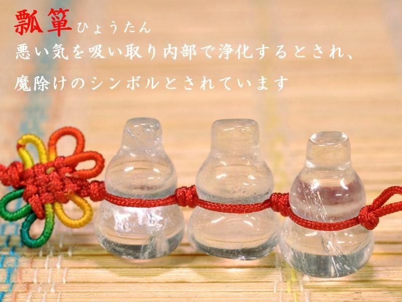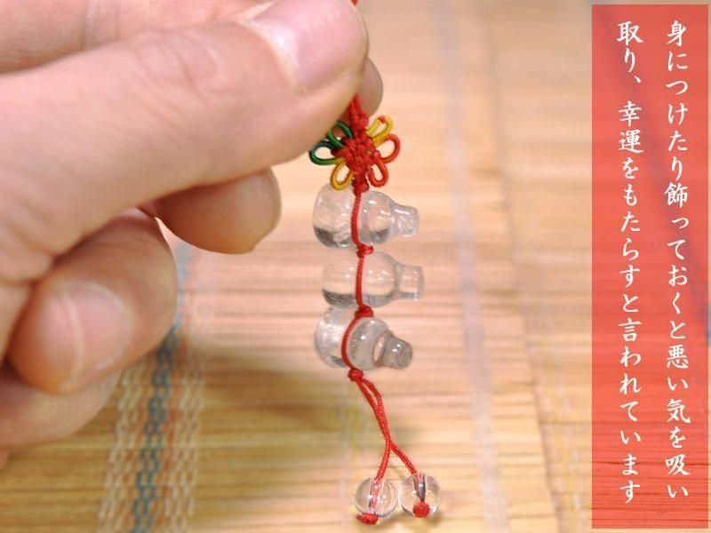 風水根付 魔除けの水晶瓢箪三連飾り 1本