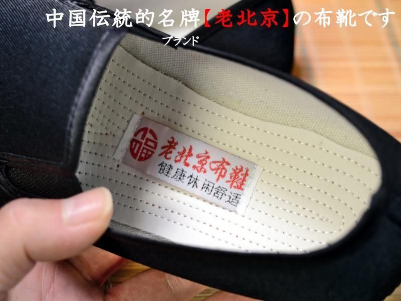 布靴は中国では古くから履かれているいわゆるカンフーシューズです。太極拳や武術の練習に最適。布製なので通気性が良く、軽くてとても履きやすいです。ブルースリーやジャッキーチェンなどが映画の中でも履いていて、武術愛好家にはおなじみの商品です。本商品は中国の伝統的名牌(ブランド)「老北京工芸」の布靴です。素足に履いても快適ですので普段履きにもお勧め!また会社内でのスリッパ代わりにもお薦めです。